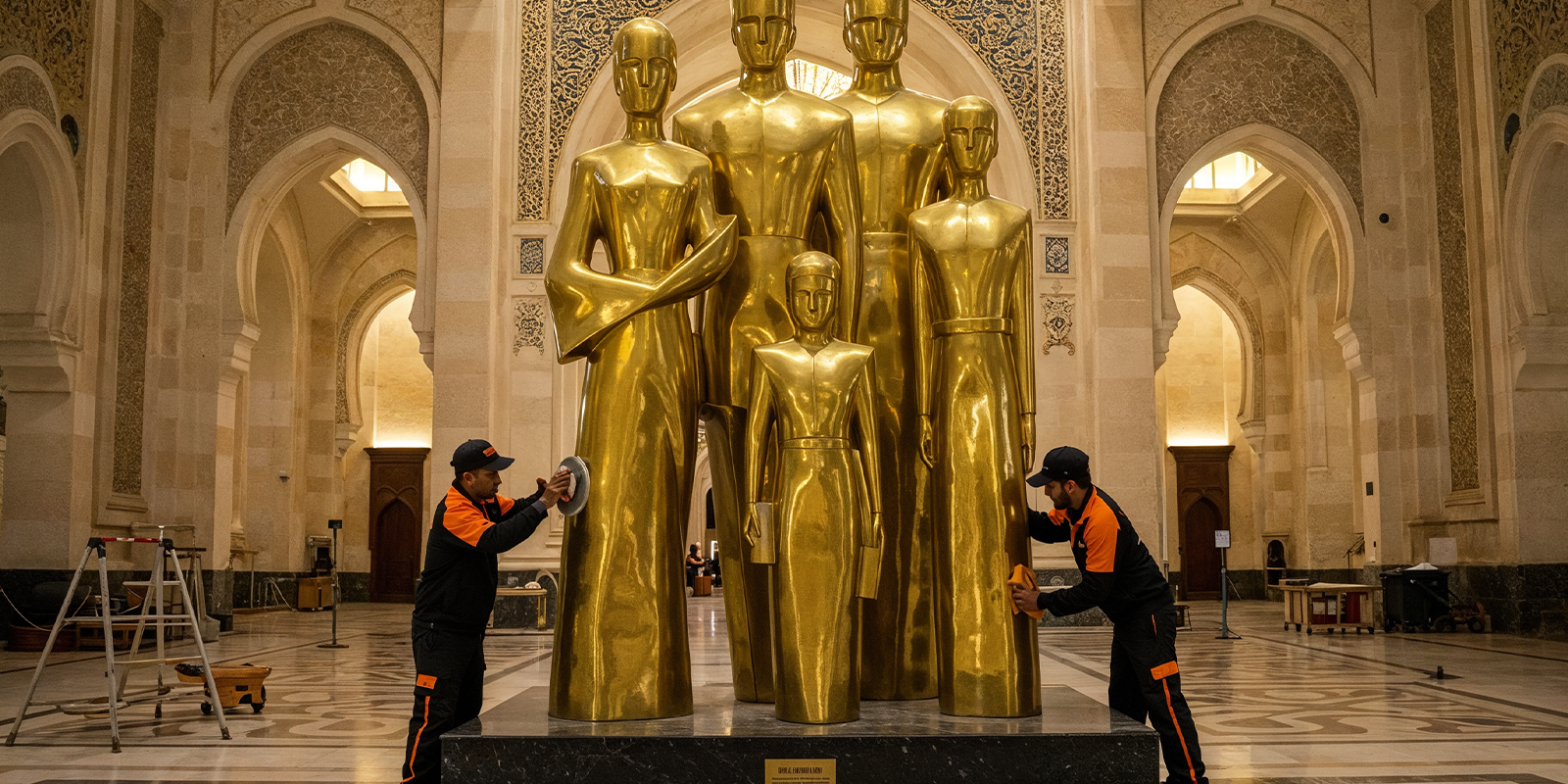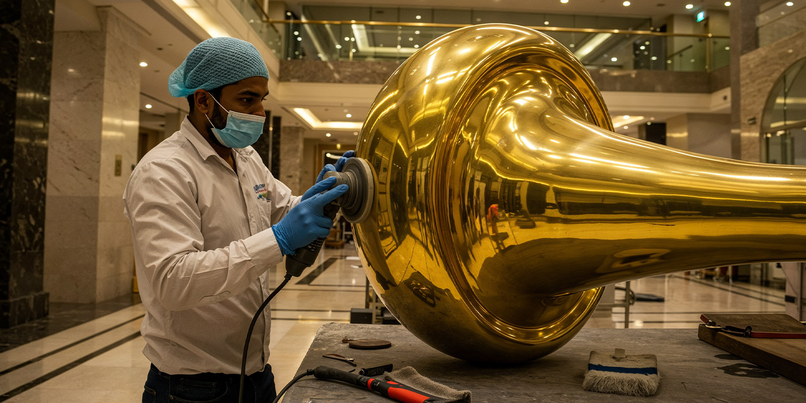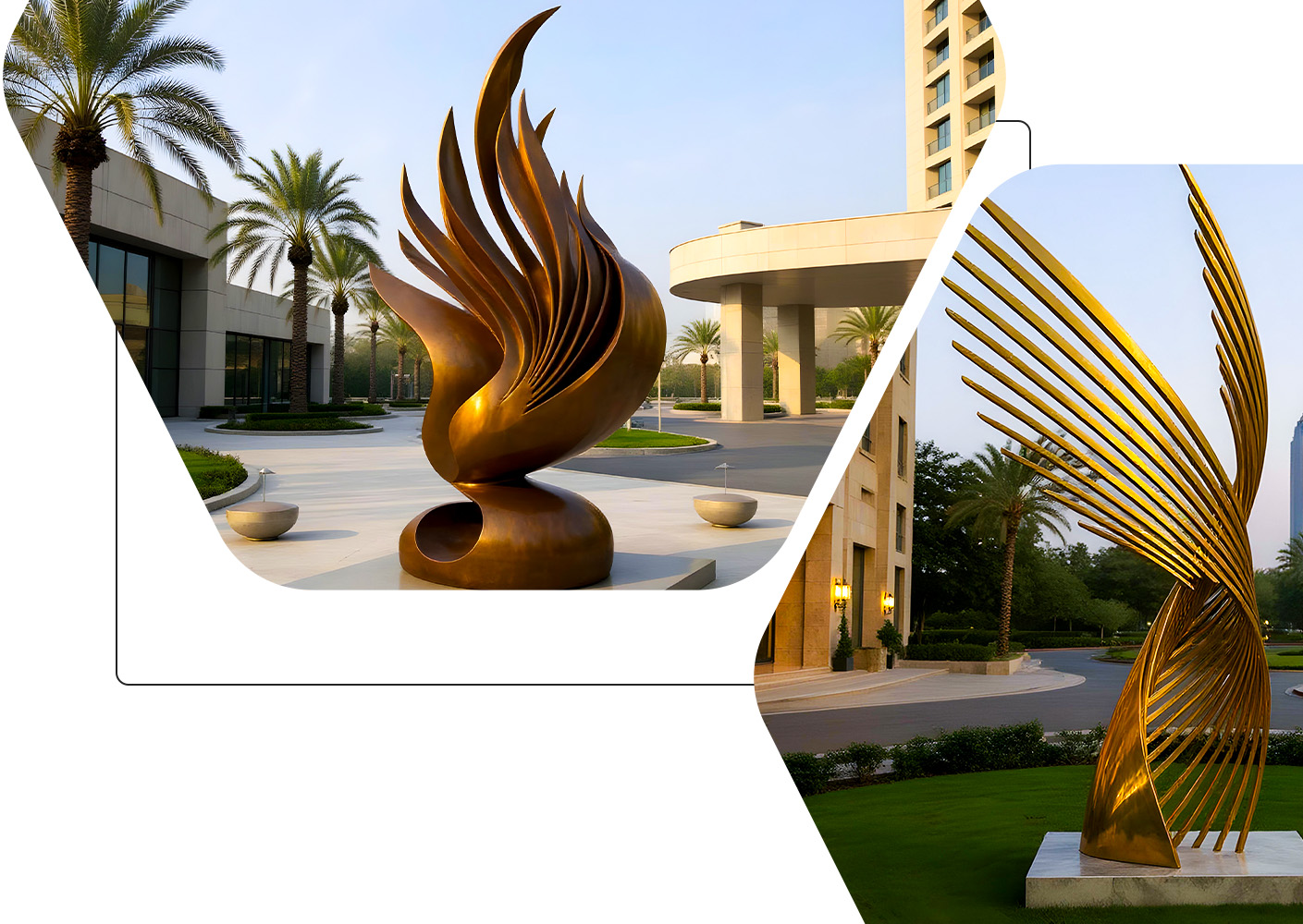 Handcrafted, durable, and golden in finish – perfect for homes, hotels, and public art.